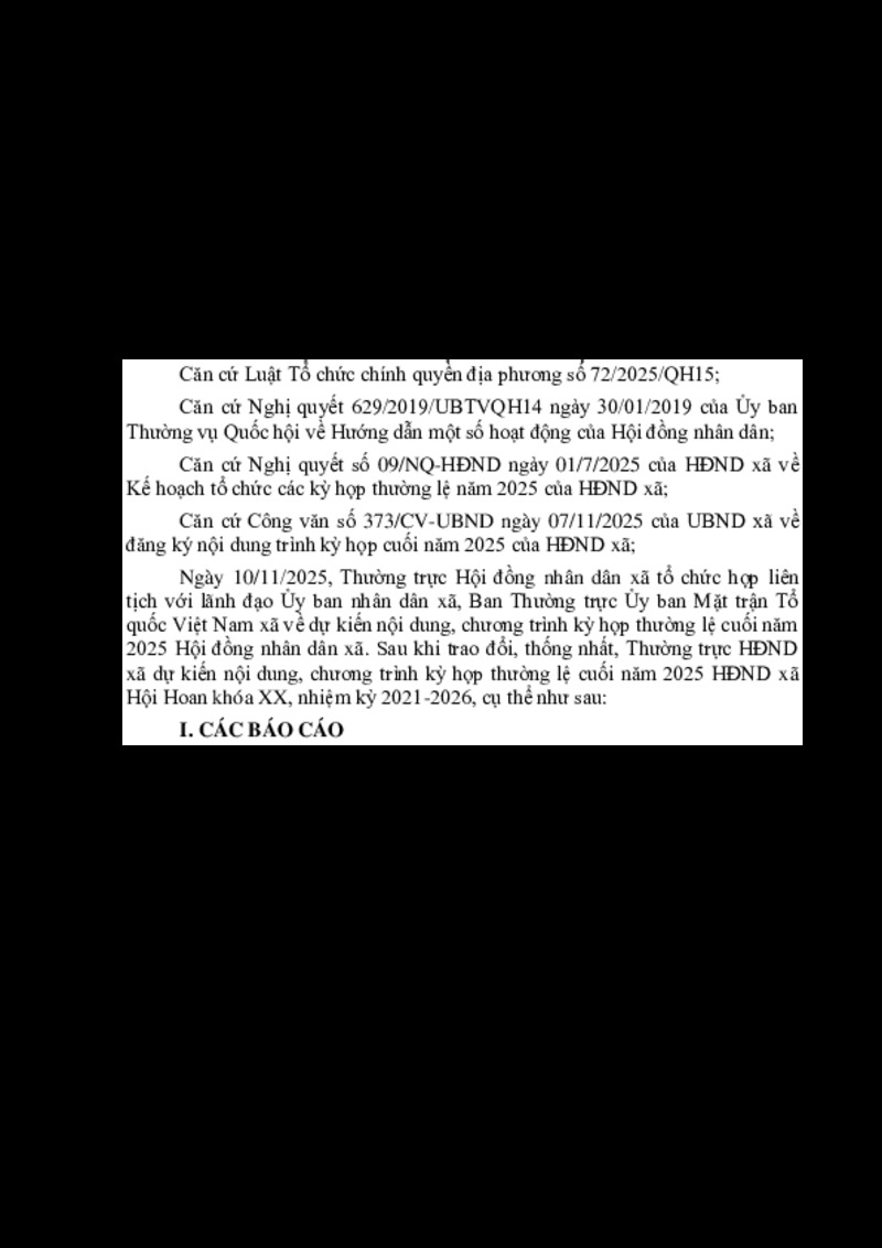 | Tiêu đề văn bản | Thông báo Nội dung, chương trình kỳ họp thường lệ cuối năm 2025 Hội đồng nhân dân xã Hội Hoan khóa XX, nhiệm kỳ 2021-2026 | ||