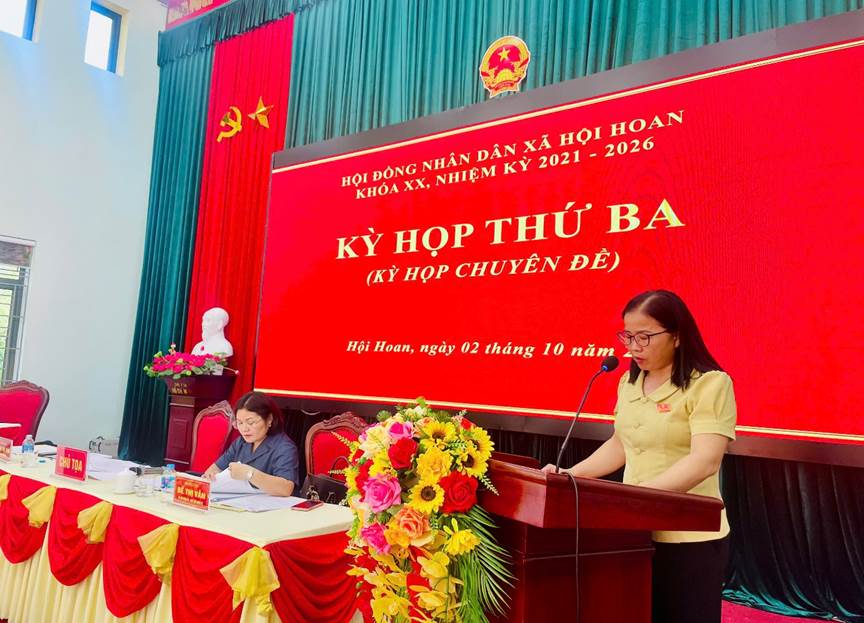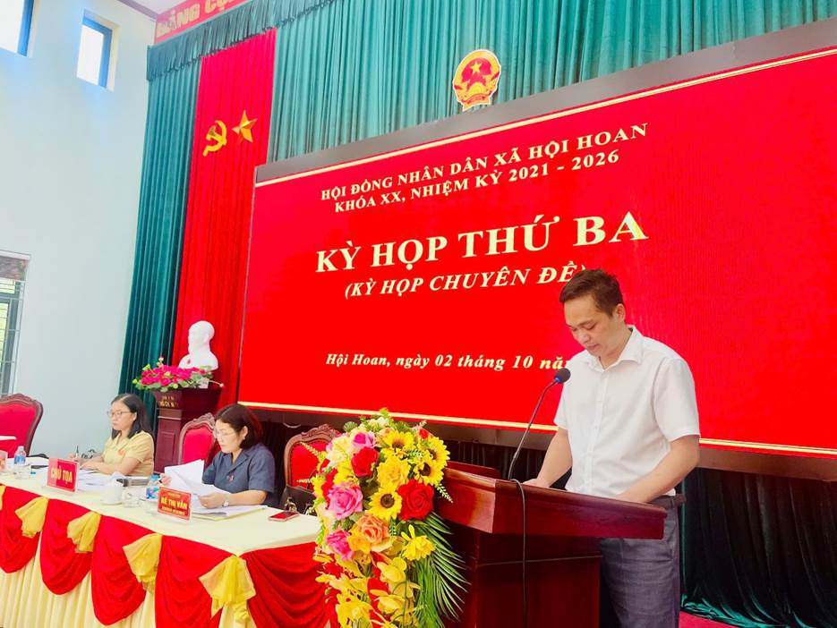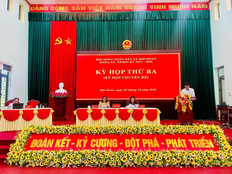 Kỳ họp thứ Ba HĐND xã Hội Hoan, khóa XX, nhiệm kỳ 2021–2026 đã hoàn thành toàn bộ nội dung chương trình đề ra và thành công tốt đẹp.