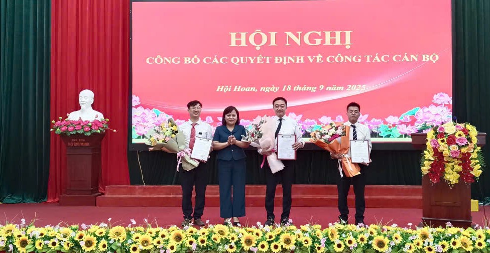 Ngày 18/9/2025, Đảng ủy, HĐND, UBND xã Hội Hoan đã long trọng tổ chức Hội nghị công bố các quyết định về công tác cán bộ. Tham dự hội nghị có các đồng chí: Bế Thị Vẫn - Bí thư Đảng ủy - Chủ tịch HĐND xã, đồng chí: Đinh Thị Tâm - Phó chủ tịch HĐND xã; đồng chí Chu Thị Bích Hảo - Phó chủ tịch UBND xã, cùng các đồng chí lãnh đạo đại diện các ban, ngành, đoàn thể cùng đông đảo cán bộ, công chức trên địa bàn.