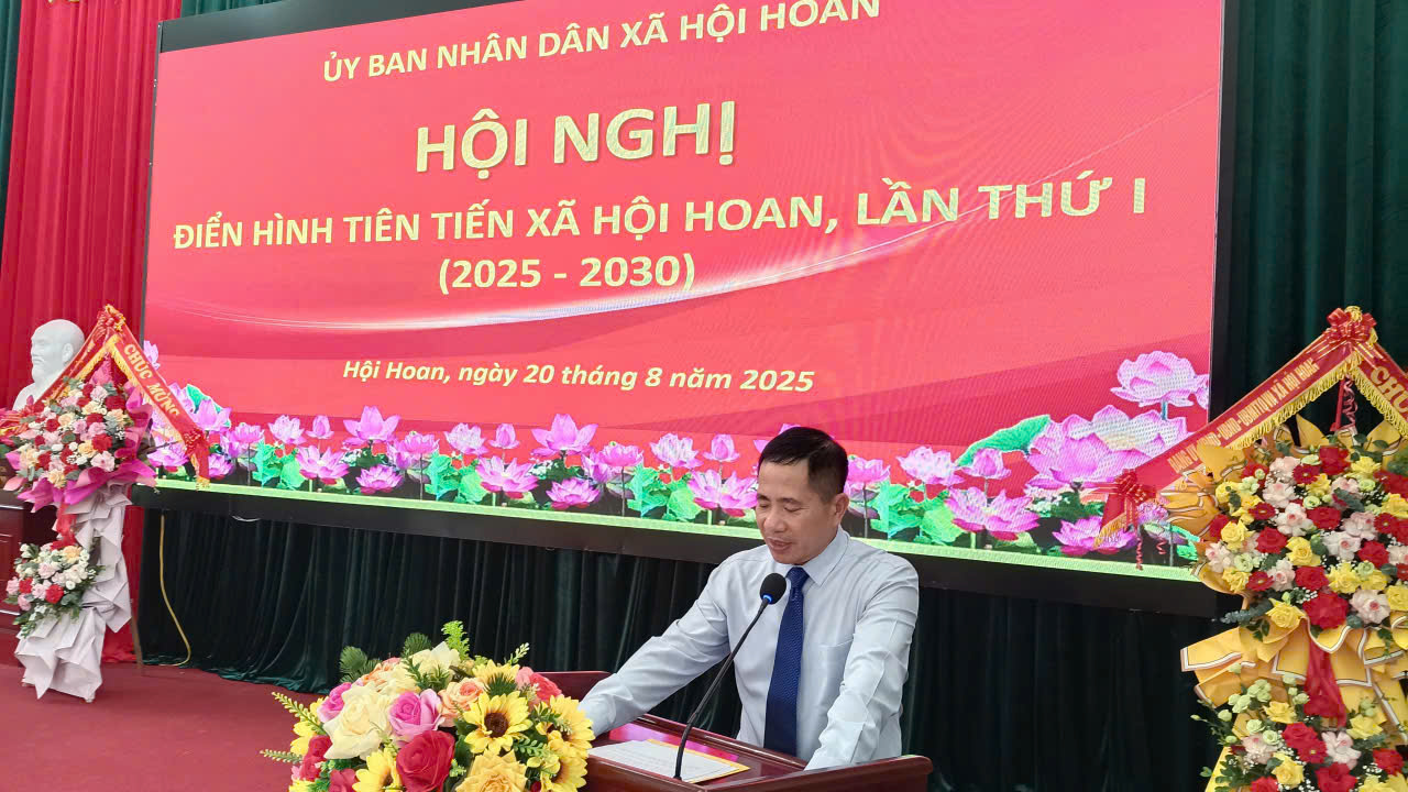 Ngày 20/8/2025, tại hội trường UBND xã Hội Hoan đã long trọng diễn ra Hội nghị điển hình tiên tiến xã Hội Hoan lần thứ I, giai đoạn 2025 – 2030. Đây là sự kiện chính trị quan trọng nhằm tôn vinh, biểu dương những tập thể, cá nhân tiêu biểu trong các phong trào thi đua yêu nước, đồng thời đề ra phương hướng, nhiệm vụ trong thời gian tới.