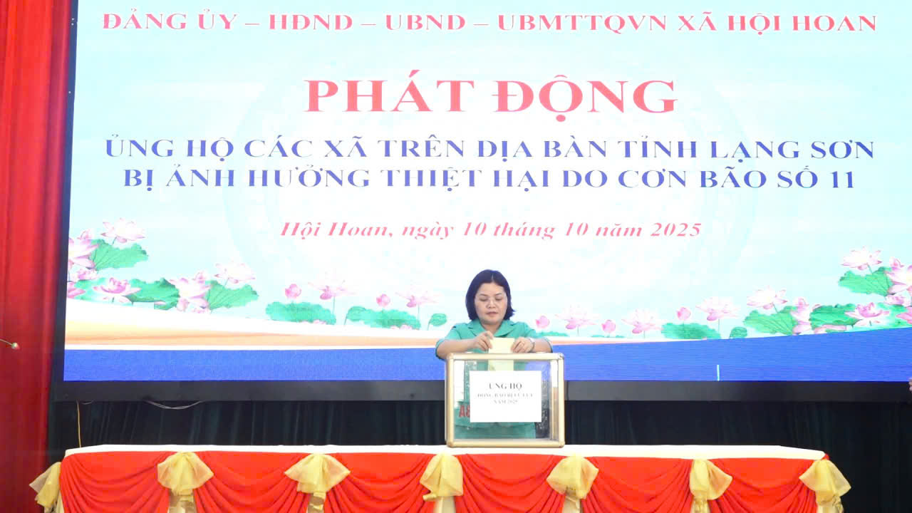 Thực hiện lời kêu gọi của Ủy ban Mặt trận Tổ quốc Việt Nam tỉnh Lạng Sơn về việc ủng hộ, giúp đỡ các địa phương bị thiệt hại do cơn bão số 11 gây ra, sáng ngày 10 tháng 10 năm 2025, Đảng ủy – HĐND – UBND – UBMTTQ Việt Nam xã Hội Hoan đã tổ chức Lễ phát động ủng hộ các xã trên địa bàn tỉnh Lạng Sơn bị ảnh hưởng, thiệt hại do cơn bão số 11.