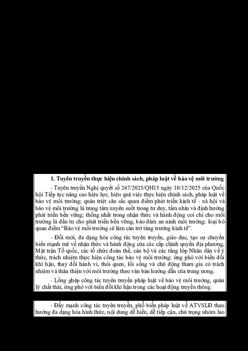 | Tiêu đề văn bản | Công văn V/v tuyên truyền thực hiện chính sách, pháp luật về bảo vệ môi trường; an toàn, vệ sinh lao động; Lễ đón nhận quân nhân xuất ngũ; Lễ giao nhận quân năm 2026 | ||